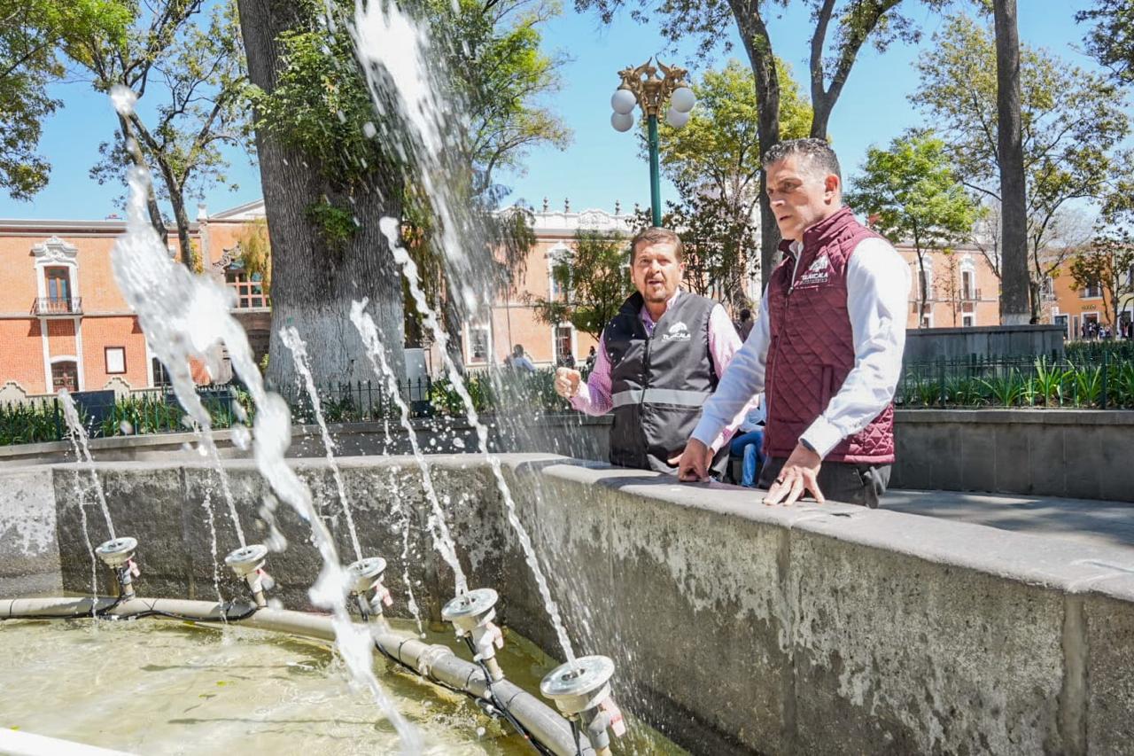 Alcalde ASG verifica que las fuentes del Centro Histórico funcionen correctamente tras mantenimiento