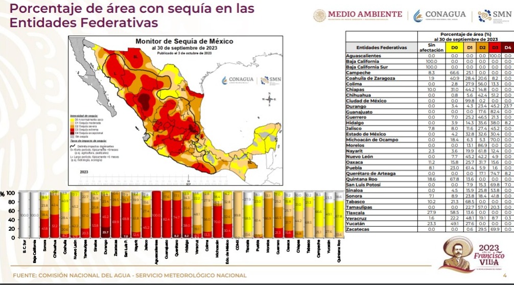 Es preciso mencionar que, la SEMARNAT en conjunto con la Comisión Nacional de Agua (CONAGUA) y el Servicio Meteorológico Nacional (SMN) crearon una clasificación para identificar el grado de afectación por sequía en las entidades.