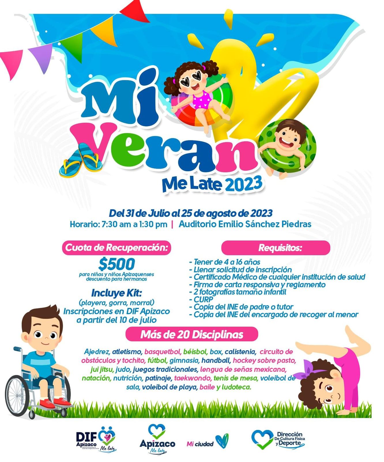 Apizaco, Tlax; 28 de julio de 2023 (PulsoRed) A punto de arrancar 𝐌𝐢 𝐕𝐞𝐫𝐚𝐧𝐨 𝐌𝐞 𝐋𝐚𝐭𝐞 𝟐𝟎𝟐𝟑 ☀️ en #Apizaco, el curso de verano más dinámico, divertido e incluyente. Con más de 20 disciplinas deportivas, con profesionales para atender a pequeños con discapacidad y el único espacio donde se impartirán talleres como: inteligencia emocional, prevención de violencia en el noviazgo, prevención de embarazo adolescente, violencia de género, entre otros.