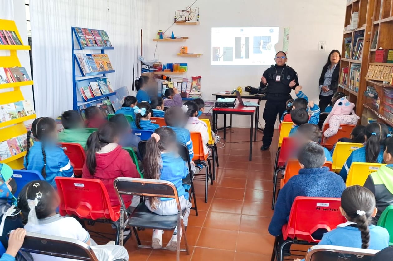 Tlaxcala, Tlax; 12 de noviembre de 2025 (PulsoRed) Como una forma de promover entornos escolares más seguros y fomentar la cultura de la paz desde la niñez, elementos de la Dirección de Seguridad, Protección Ciudadana y Movilidad del Ayuntamiento de Tlaxcala impartieron una plática preventiva dirigida a alumnas y alumnos de la Escuela Primaria “Héroes de Chapultepec”, en la comunidad de Ocotlán.