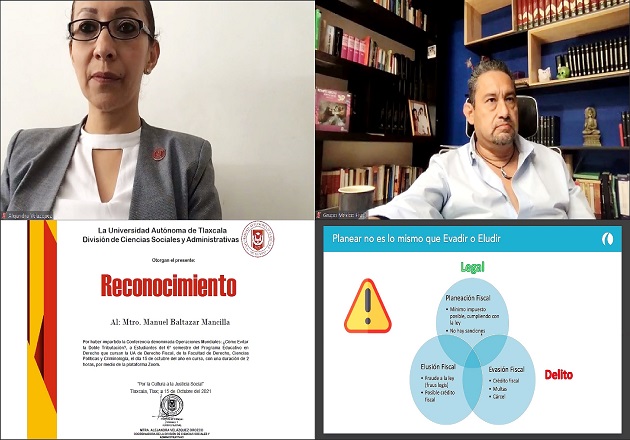 Tlaxcala, Tlax; 21 de octubre de 2021 (Pulso Red) Con la finalidad de complementar los conocimientos que adquieren los estudiantes, la Universidad Autónoma de Tlaxcala (UATx), a través de la Coordinación de la División de Ciencias Sociales y Administrativas, llevaron a cabo la conferencia intitulada: “Operaciones mundiales, cómo evitar la doble tributación internacional”, impartida por el Mtro. Manuel Baltazar Mancilla, miembro de la firma México Fiscal, la cual estuvo dirigida a integrantes del sexto semestre del programa educativo en Derecho.