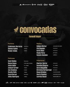 La convocatoria de la Selección Femenil Mayor quedó de la siguiente forma: como porteras, Esthefanny Barreras de Pachuca, Celeste Espino de Chivas y Wendy Toledo de Pumas; en medias, Rebeca Bernal de Washington Spirit, Elia Sánchez y Karla Nieto de Pachuca ambas, Nicole Pérez de Rayadas y Natalia Mauleón del américa.