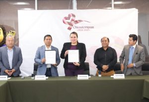 La alcaldesa Blanca Angulo Meneses y el titular del Icatlax, Juan Javier Potrero Tizamitl firmaron un convenio de colaboración que entre otros puntos prevé capacitación gratuita a grupos vulnerables y flexibilidad para impartir cualquiera de los más de 200 cursos de extensión en el plantel Chiautempan