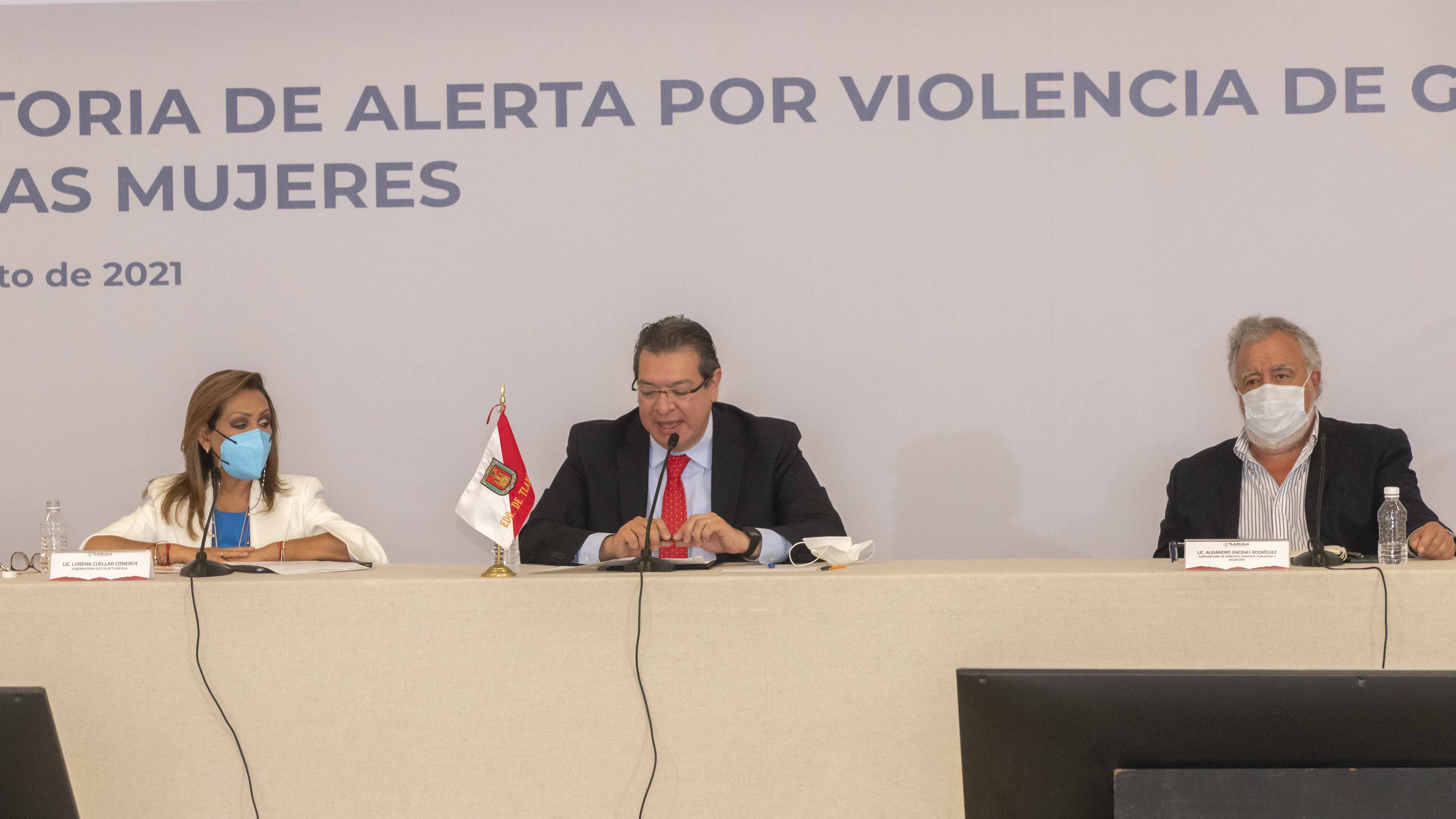 En su mensaje, el Gobernador Mena explicó que la declaratoria consiste en una serie de acciones gubernamentales conducidas por la Secretaría de Gobernación Federal junto con la Administración Estatal y municipios, con el propósito de integrar una agenda de trabajo intensa para llevar a cabo las recomendaciones que establece el documento y obtener los resultados esperados.