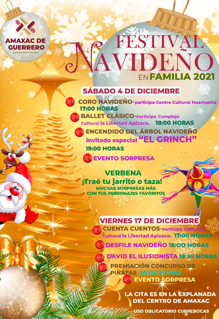 Tlaxcala, Tlax; 2 de diciembre de 2021 (Pulso Red) El espíritu de la navidad ha llegado al lugar donde se bifurca el agua; el Ayuntamiento de Amaxac de Guerrero anunció que el próximo sábado cuatro de diciembre, dará inicio el “Festival Navideño en Familia”, que ha preparado para el disfrute de vecinos y visitantes.