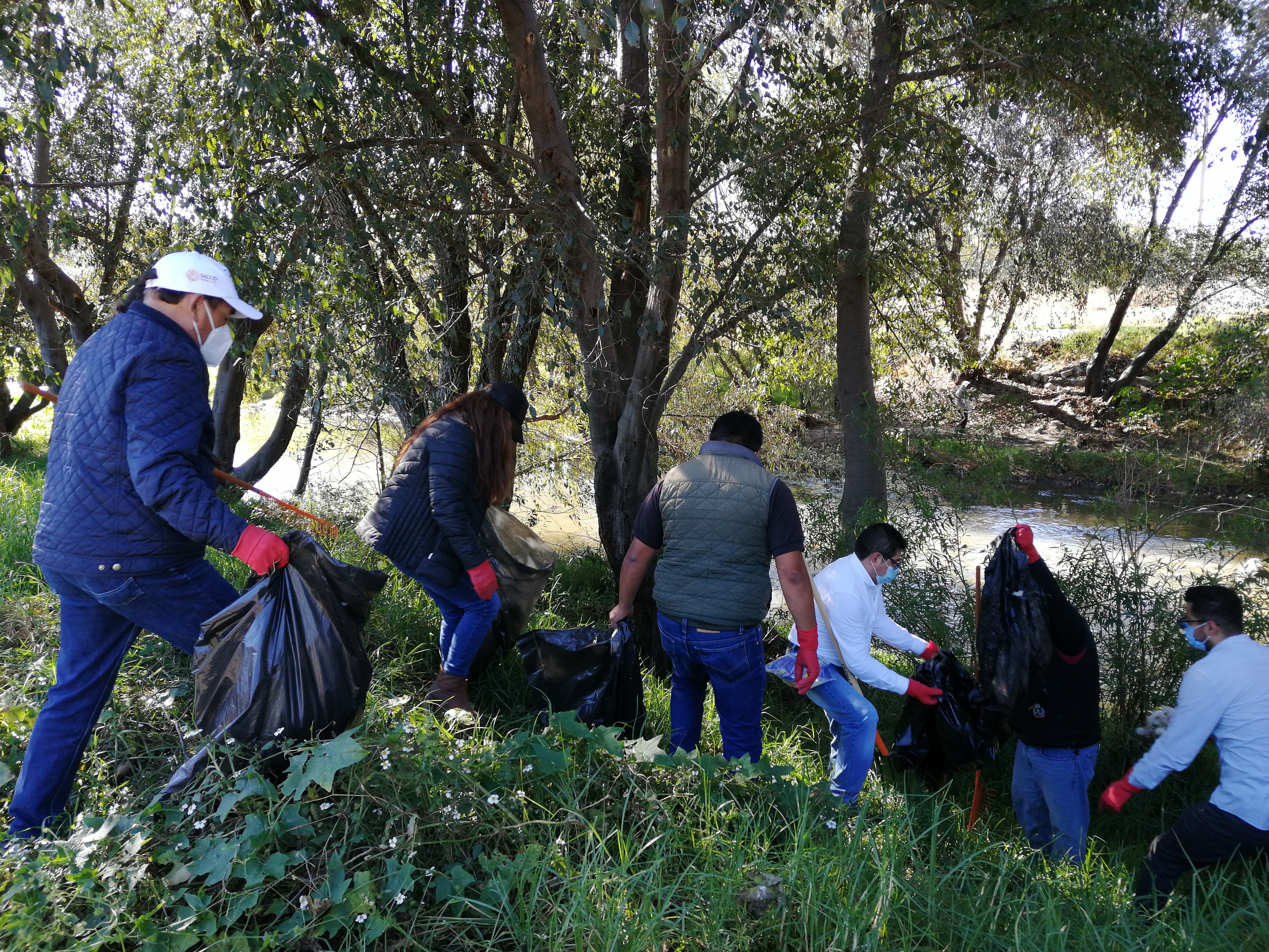 Tlaxcala, Tlax; 1 de diciembre de 2021 (Pulso Red) Como parte de las labores interinstitucionales de Sanitización del Río Zahuapan-Atoyac; en particular en el área conocida como dos arroyos, donde el Río Zahuapan se nutre de estos dos cauces; en los límites con los municipios de Contla de Juan Cuamatzi y Apetatitlán de Antonio Carbajal.