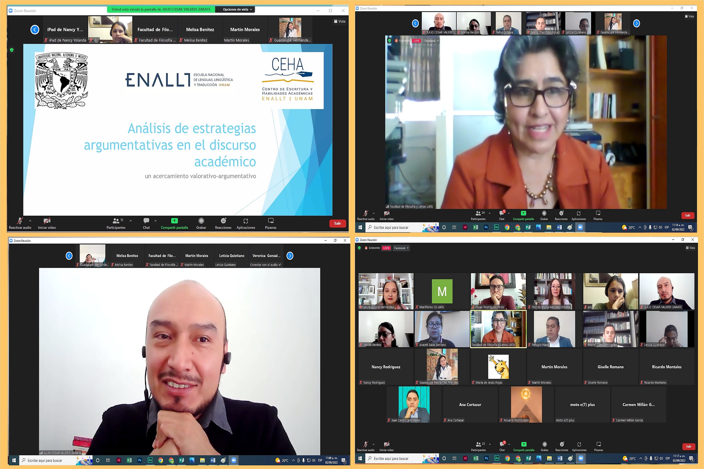 Tlaxcala, Tlax; 5 de septiembre de 2022 (Pulsored) La Facultad de Filosofía y Letras de la Universidad Autónoma de Tlaxcala (UATx), a través de la Maestría en Estudios del Discurso y Literacidades, llevó a cabo la conferencia intitulada: “Análisis de estrategias argumentativas en el discurso académico: un acercamiento valorativo-argumentativo”, impartida por el Doctor Julio Cesar Valerdi Zárate, profesor de la Escuela Nacional de Lenguas, Lingüística y Traducción de la UNAM, dirigida a los maestrandos que cursan este programa educativo. Este evento, contó con la presencia de la Maestra Verónica González Quintos, Directora de la Facultad; de la Doctora Laura Aurora Hernández, Coordinadora del Posgrado; así como docentes y estudiantes.
