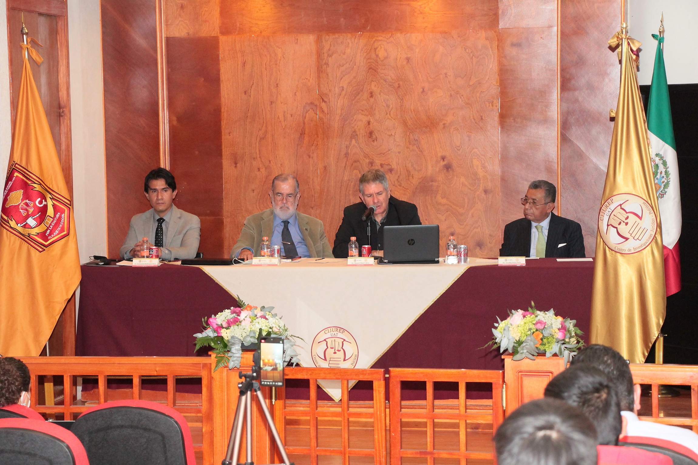 En este evento, que estuvo presidido por el Dr. Serafín Ortiz, Coordinador Científico del CIJUREP, el Dr. Emmanuel Rodríguez Baca, en representación del Dr. Fernando Tenorio Tagle, Coordinador General de ese Centro, apuntó que, este ejercicio académico, tiene como meta enriquecer la dinámica de preparación de los estudiantes en este espacio, ya que, en esta ocasión, se aborda un tópico relacionado con la Historia y el Derecho, lo que refleja la multidisciplinariedad que se tiene en este recinto, lo que ha generado propuestas innovadoras en materia de la ciencia jurídica.