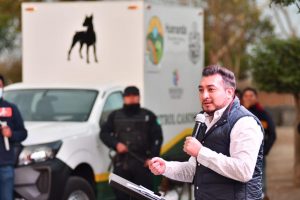 Al término del evento, el presidente municipal hizo la entrega simbólica de la Unidad de Control Canino, que recoge a perros y gatos que son puestos en donación o reportados por la ciudadanía.