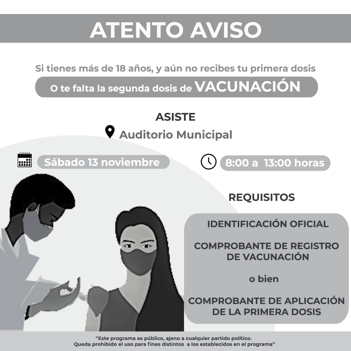 Se recuerda que “Este programa es público, ajeno a cualquier partido político. Queda prohibido el uso para fines distintos a los establecidos en el programa” y que se difunde por ser un asunto de salud pública.