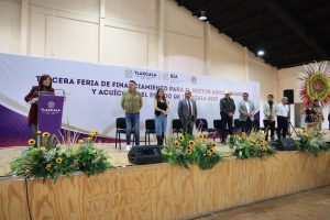 Tlaxcala, Tlax; 29 de enero de 2025 (PulsoRed) Al inaugurar la tercera Feria de Financiamiento para el sector Agropecuario y Acuícola del estado de Tlaxcala 2025, la gobernadora Lorena Cuéllar Cisneros afirmó que su administración busca que los productos del campo tlaxcalteca tengan diversas oportunidades para su venta.