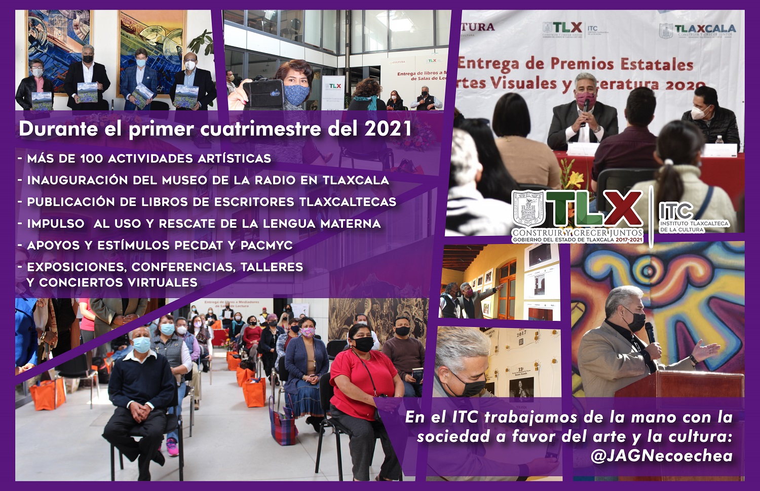 Tlaxcala, Tlax; 24 de enero de 2021 (Pulso) El Instituto Tlaxcalteca de la Cultura (ITC), reactivará la agenda artística y cultural del estado con diplomados, conciertos, presentaciones de libros, talleres, conferencias y exposiciones en formato virtual.