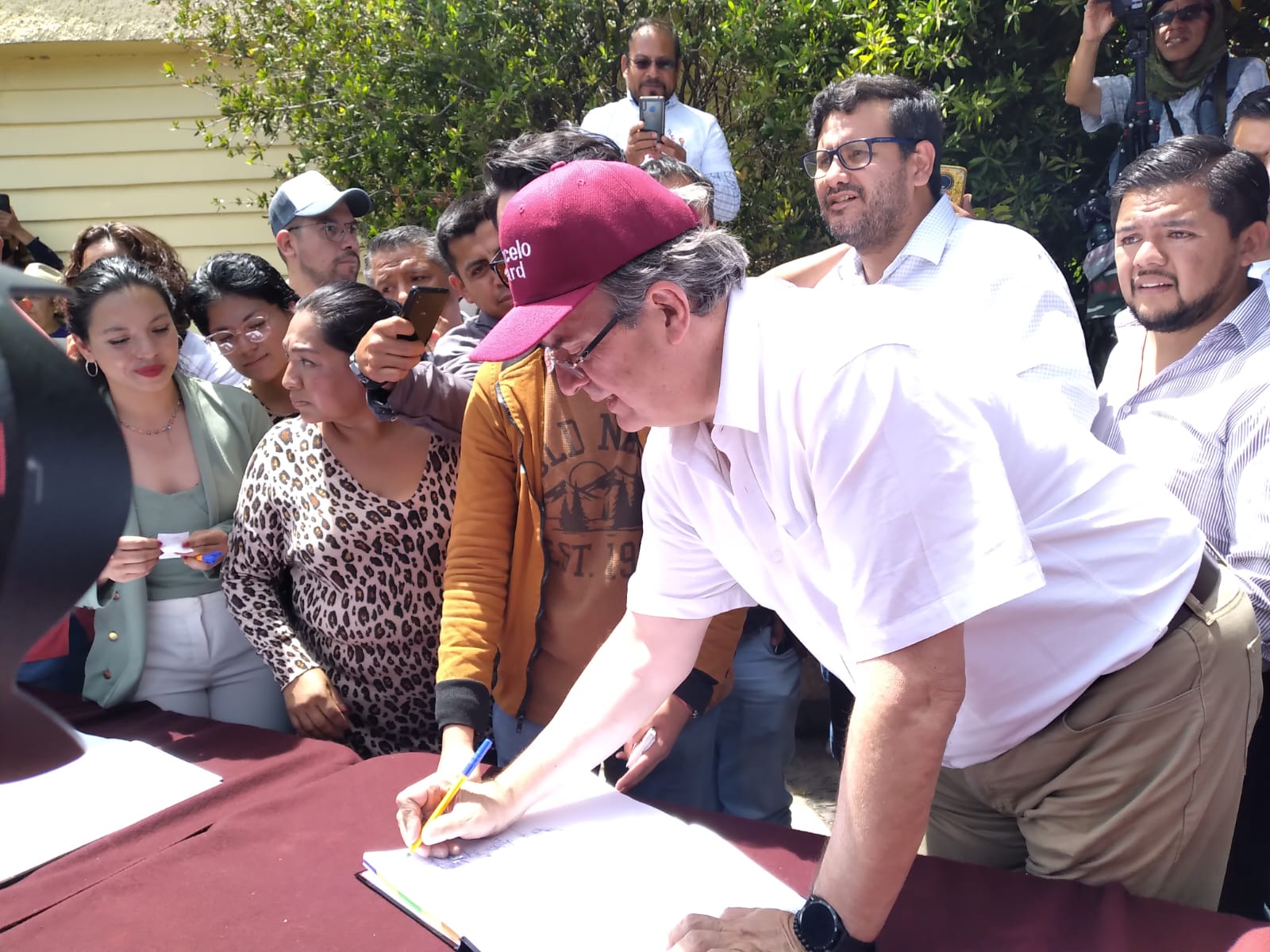 Cientos de simpatizantes del ex titular de la Secretaría de Relaciones Exteriores (SRE) se dieron cita en lo alto de las Escalinatas de los Héroes de Tlaxcala para refrendar su apoyo a Marcelo Edrad quien inició en el estado su gira.