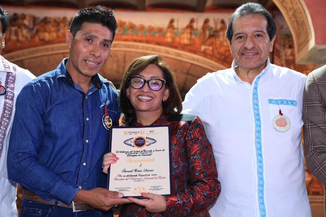 “Quiero decirles a todos ustedes que, es un honor acompañarlos en esta entrega de reconocimientos, a talentosos creadores tlaxcaltecas, verdaderos guardianes del patrimonio artesanal de México. Es un honor poder saber que en sus manos, su mente, su corazón construyen diariamente diferentes piezas que son únicas y que hoy se habla de Tlaxcala en el mundo entero y ese es un gran orgullo”, enfatizó en el patio central del Palacio de Gobierno.