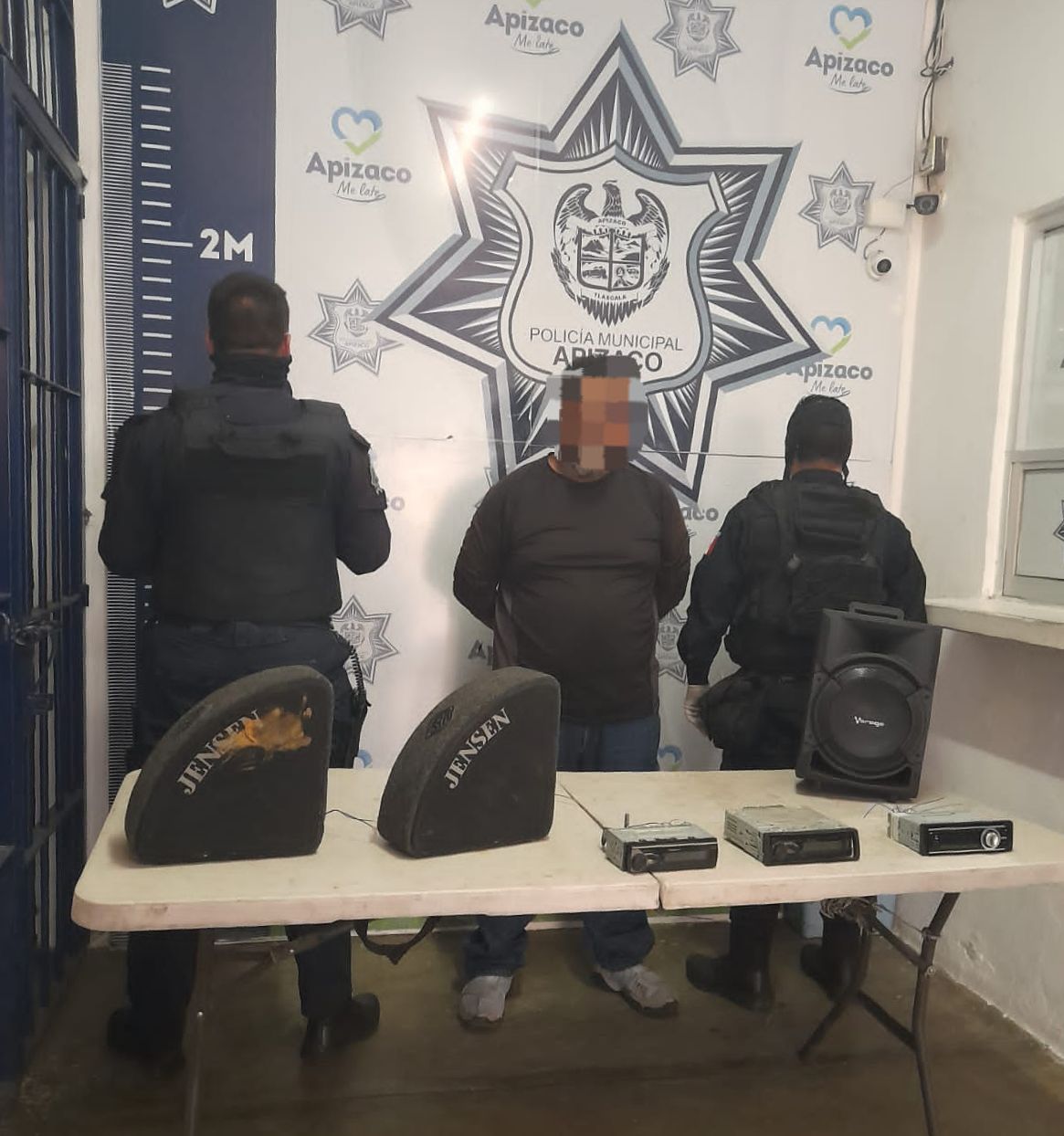 Al hacerle la revisión de seguridad al interior de la unidad, encontraron tres autoestéreos y bocinas, confirmando el robo de autopartes, por lo que las autoridades municipales aseguraron y le leyeron sus derechos que le asisten como persona detenida al imputado.