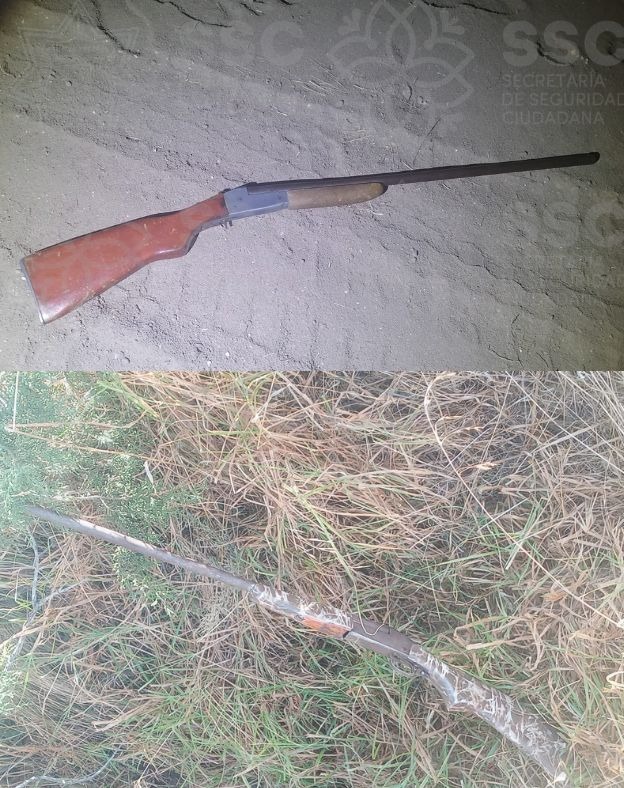 Tlaxcala, Tlax; 2 de enero de 2023 (PulsoRed) Con el objetivo de prevenir cualquier hecho ilícito o algún accidente, elementos de la Dirección de Seguridad de la Secretaría de Seguridad Ciudadana (SSC) ubicaron dos armas de fuego abandonadas durante patrullajes preventivos.