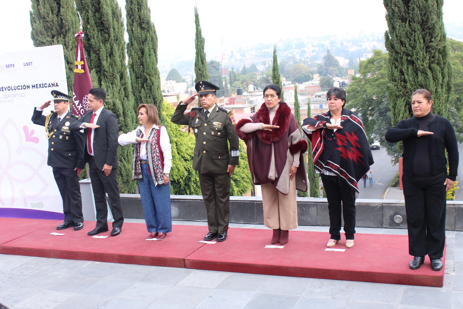 Tlaxcala, Tlax; 20 de noviembre de 2023 (PulsoRed) La presidenta municipal de Tlaxcala, Maribel Pérez Arenas, asistió a la ceremonia cívica conmemorativa por el CXIII Aniversario de la Revolución Mexicana, presidida por la titular del Ejecutivo Estatal, Lorena Cuellar Cisneros.