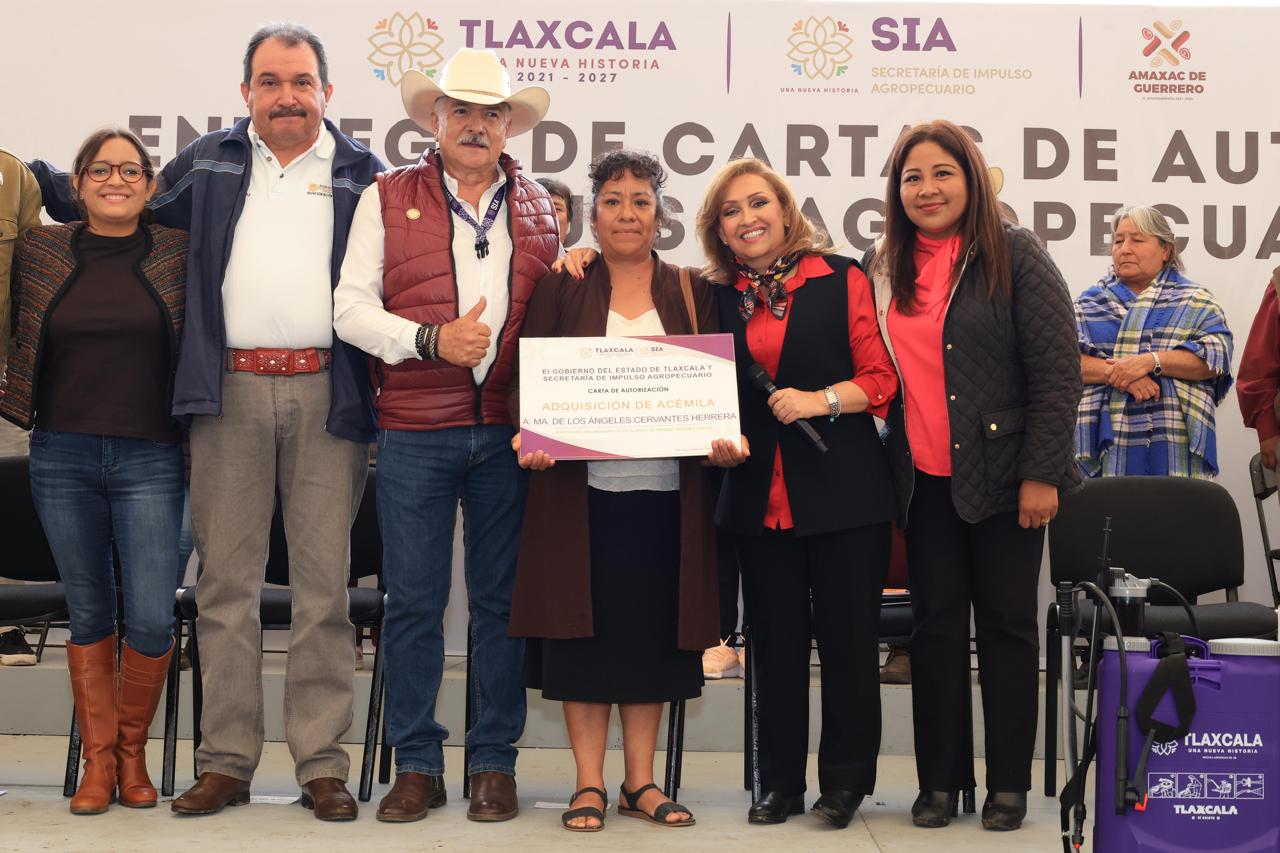 Ante cientos de beneficiarios concentrados en el municipio de Amaxac de Guerrero, la mandataria estatal sostuvo que, desde su gobierno, se han proporcionado apoyos de maquinaria, equipo, infraestructura, material vegetativo, insumos y pie de cría, con el fin contribuir al crecimiento sustentable del sector y al desarrollo de la economía de los pequeños productores rurales.