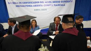 Resaltó que la entrega de certificados a 23 beneficiarios es resultado del convenio interinstitucional que se firmó en el año 2023 para poner en marcha por primera vez el Plan de Estudios de Preparatoria Abierta entre la población que se encuentra en los Centros de Reinserción Social (Ceresos) de los municipios de Tlaxcala y Apizaco, así como el Anexo Femenil y el Centro de Internamiento de la Coordinación Estatal de Medidas para Adolescentes.