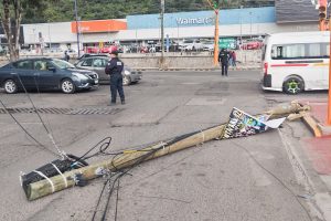 De acuerdo con testigos, el vehículo involucrado no se detuvo tras el incidente, lo que provocó que los cables fueran arrastrados y, en consecuencia, varios postes colapsaran. Uno de ellos cayó sobre un vehículo particular marca Atos que se encontraba estacionado. A pesar del impacto, no se registraron personas lesionadas.