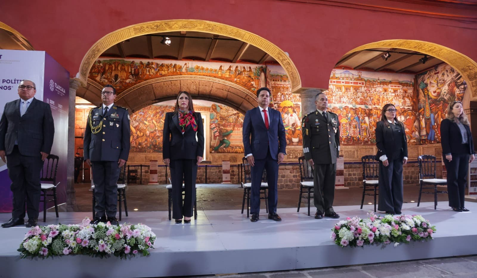 En el acto protocolario, estuvieron presentes la presidenta del Tribunal Superior de Justicia del Estado (TSJE), Anel Bañuelos Meneses; la representante legal del Congreso local, Reyna Flor Báez Lozano; la síndico de Tlaxcala, Ivonne Hernández Blancas; el comandante de la 23 Zona Militar, Martín Jaramillo Barrios, y el coordinador de la Guardia Nacional (GN) en el estado, Alfredo Montiel Godínez, así como funcionarios y servidores públicos y del sector educativo del estado.