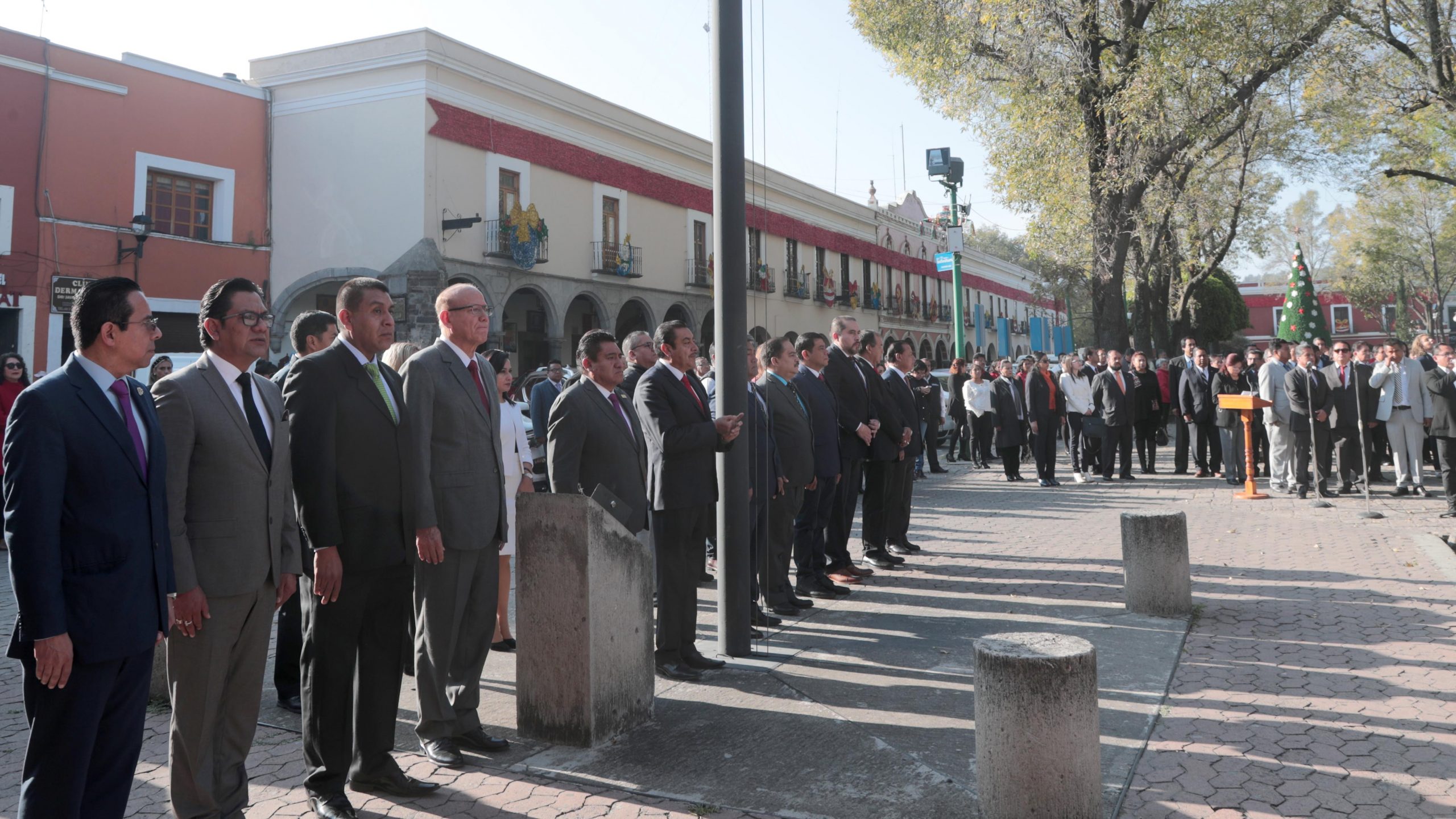 El Secretario de Educación Pública del Estado (SEPE), Florentino Domínguez Ordóñez, encabezó los honores al lábaro patrio en la explanada de Palacio de Gobierno.