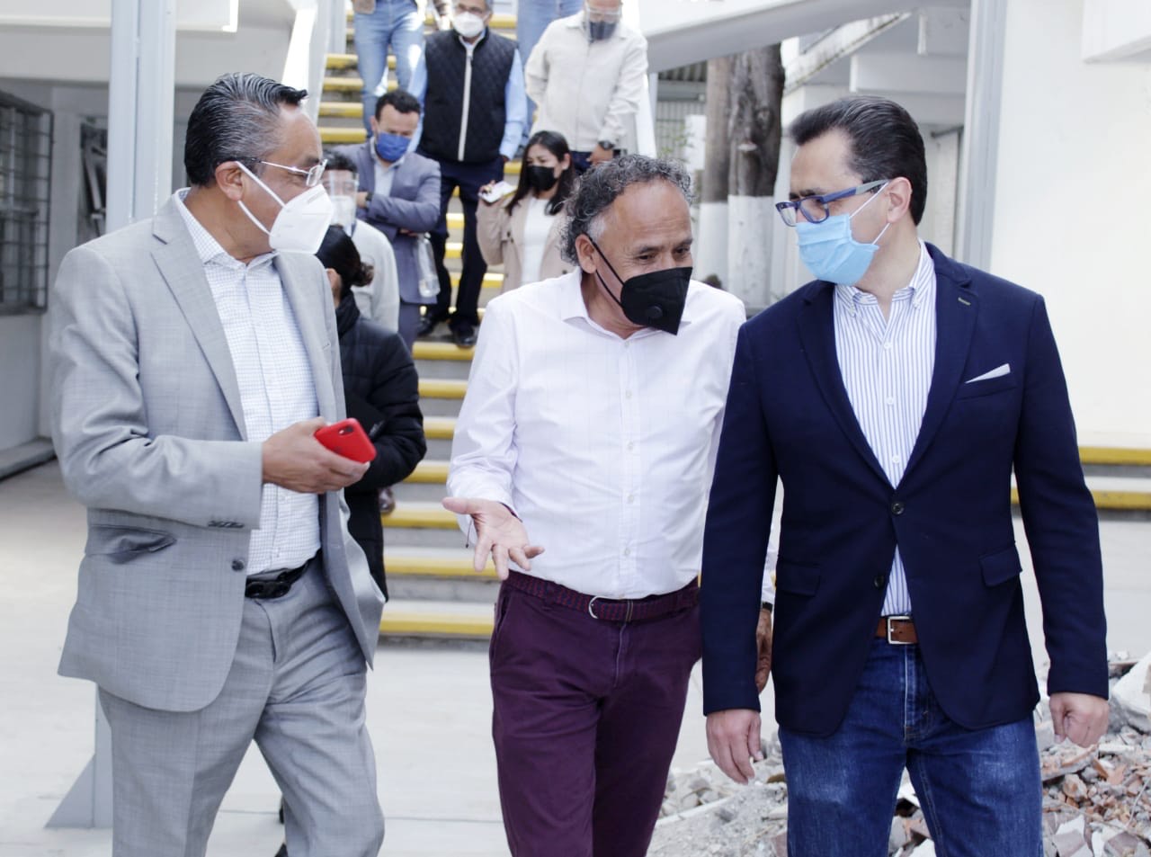 Tlaxcala, Tlax; 3 de marzo de 2021 (Pulso) En el marco del convenio signado por el Gobierno del Estado con Fundación Azteca para aperturar en la entidad una escuela de talentos, este martes los titulares de Políticas Públicas y del Sistema Estatal de Promoción del Empleo (Sepol-Sepuede), Manuel Camacho Higareda; de Educación Pública (SEPE), Roberto Lima Morales, y de Obras (Secoduvi), Emiliano Alejandro Serrano García, supervisaron el avance de los trabajos de adecuación en el inmueble educativo.