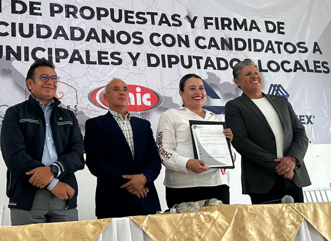 Tlaxcala, Tlax; 25 de mayo de 2024 (Redacción) La candidata de Morena a la presidencia municipal e Chiautempan, Blanca Angulo Meneses participó en la Exposición de Propuestas y Firma de Compromisos Ciudadanos que fue convocado por las cámaras que integran la Alianza Empresarial del estado de Tlaxcala.