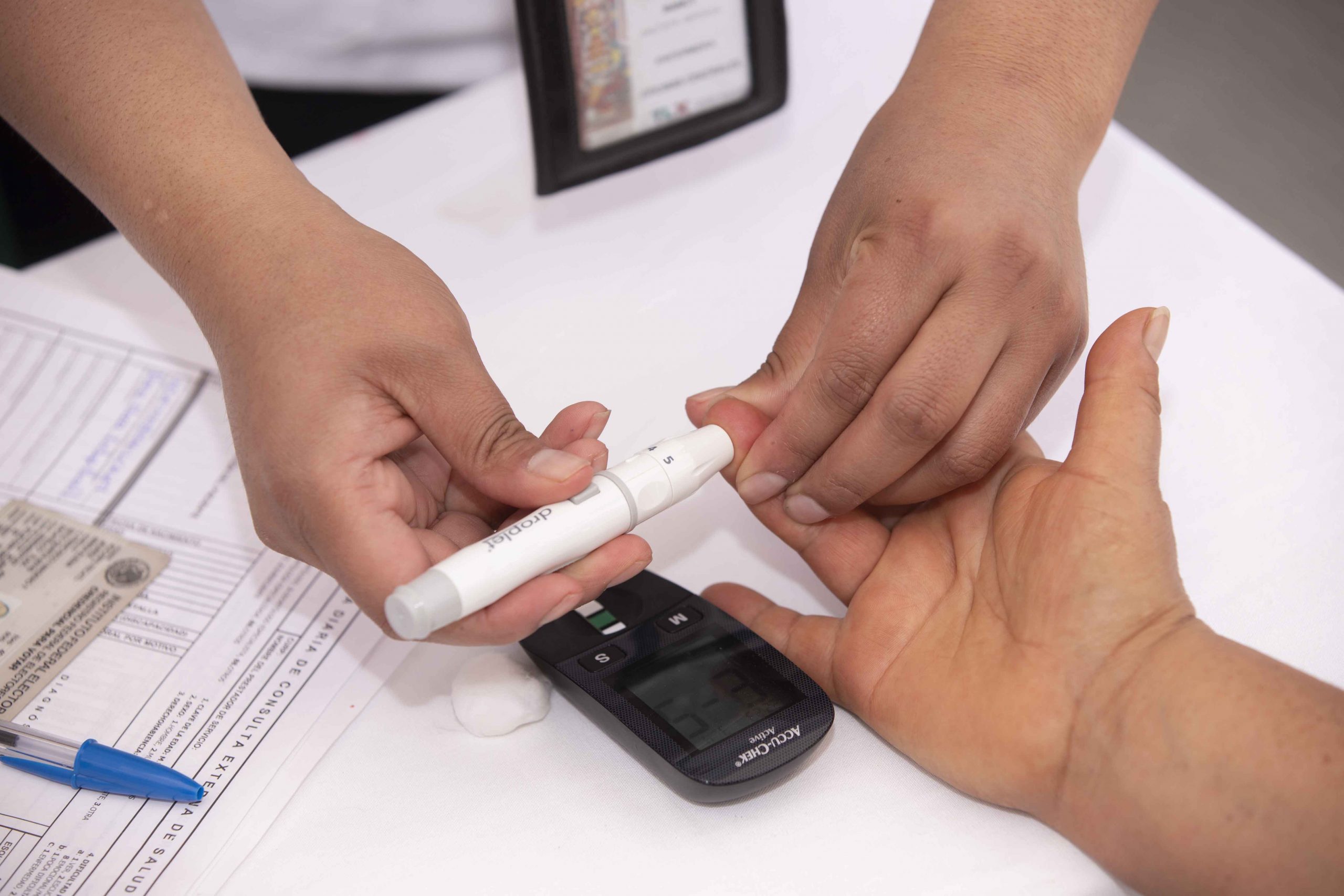 En todas las unidades de salud y en la Unidad de Especialidades Médicas de Enfermedades Crónicas (Uneme-EC) se realizan detecciones de factores de riesgo para diabetes mellitus e hipertensión arterial y la toma de glucosa capilar, con la finalidad de realizar un diagnóstico oportuno de estos padecimientos.