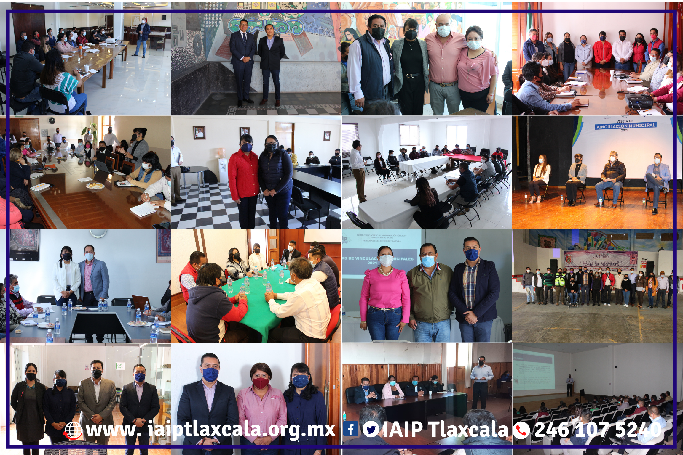 Tlaxcala, Tlax; 10 de octubre de 2021 (Pulso) El Instituto de Acceso a la Información Pública y Protección de Datos Personales del Estado de Tlaxcala (IAIP), continúa con las Visitas de Vinculación Municipales a través de acercamientos que durante las últimas dos semanas se concretaron con 16 comunas del estado, en donde Comisionados del órgano garante orientaron a autoridades municipales sobre sus funciones en materia de transparencia, protección de datos personales, acceso a la información, y archivos.