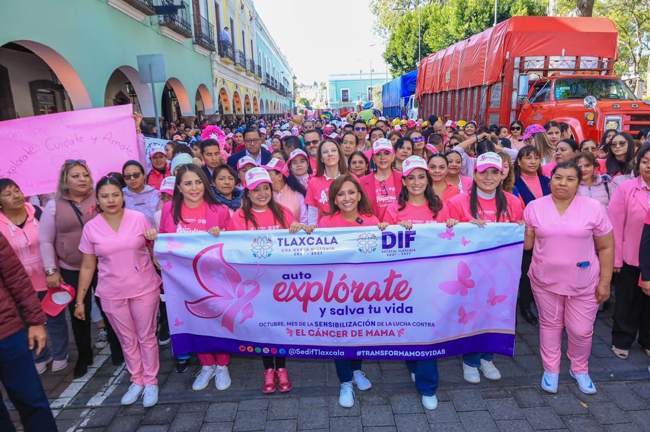 Desde el Parque Xicohténcatl hasta el monumento de Los Niños Mártires de Tlaxcala, cientos de personas caminaron juntas, formando un lazo de apoyo para todas las mujeres que enfrentan la lucha contra el cáncer de mama.