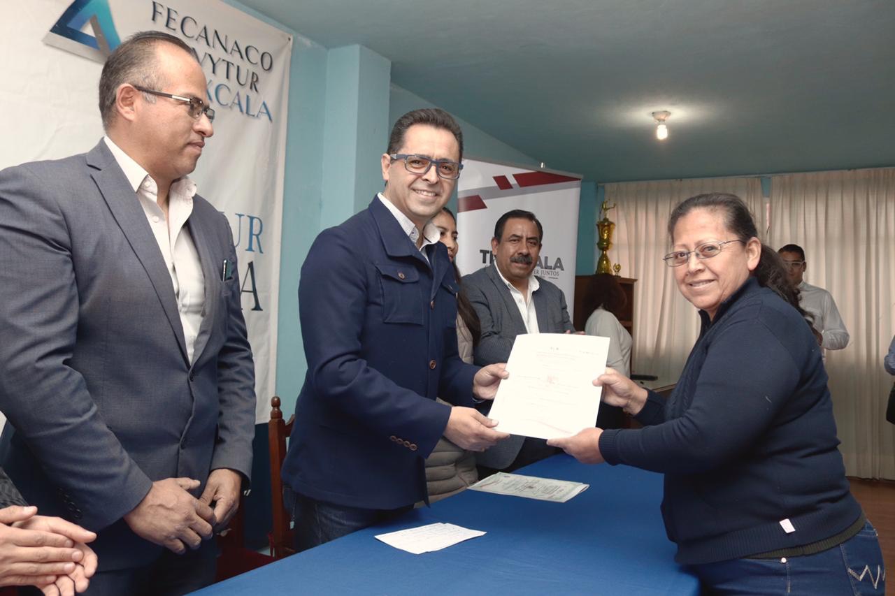 Tlaxcala, Tlax; 16 de diciembre de 2019 (Pulso) El Director General del Instituto de Capacitación para el Trabajo (Icatlax), Manuel Camacho Higareda, entregó a agremiados de la Cámara Nacional de Comercio Servicios y Turismo (Canaco-Servytur) de Huamantla constancia de conclusión de cursos en Principios Básicos de Contabilidad.