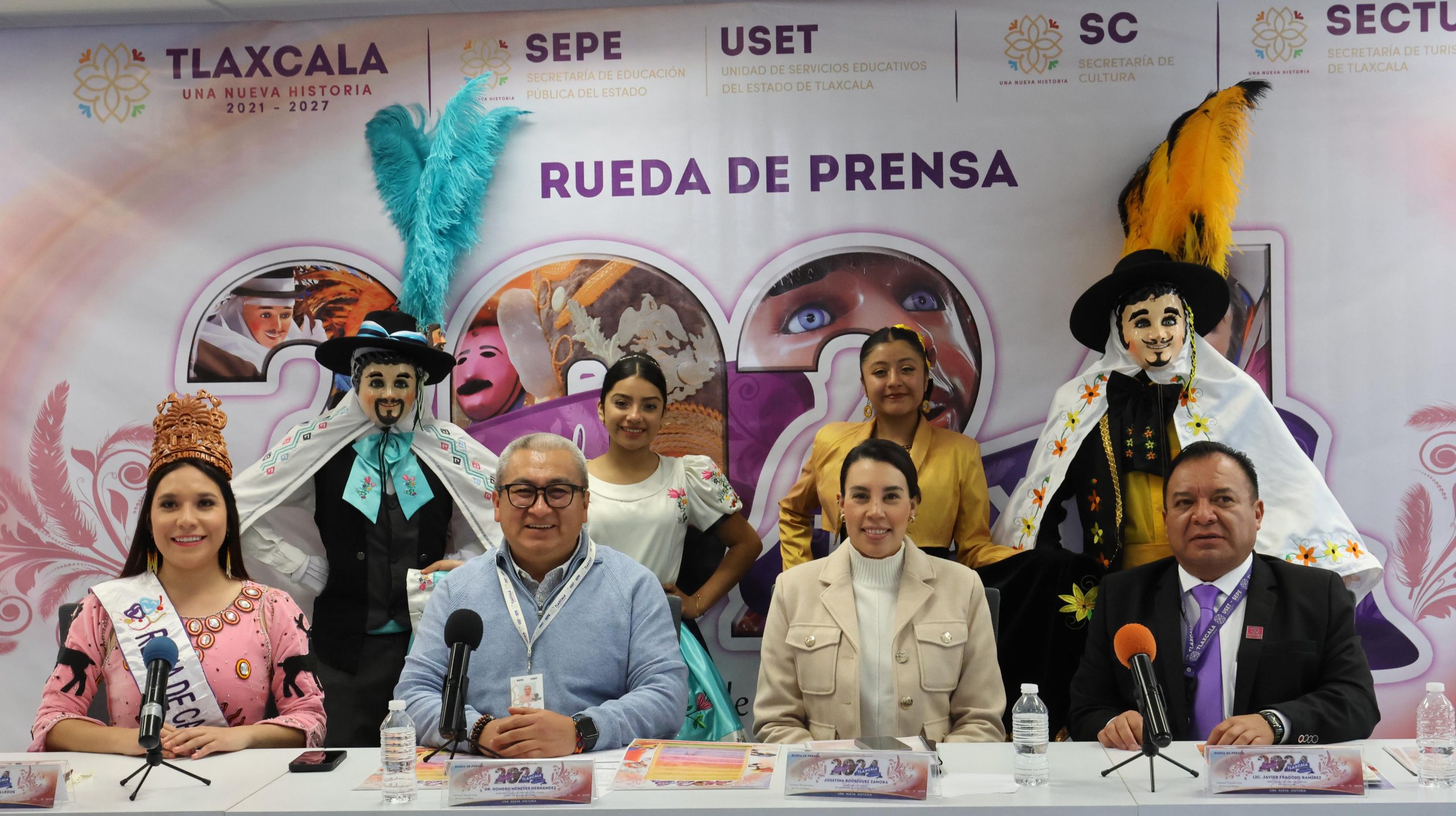 Tlaxcala, Tlax; 31 de enero de 2024 (PulsoRed) Con el propósito de difundir las costumbres y tradiciones de la entidad, el gobierno del estado, a través de las secretarías de Educación Pública (SEPE), de Cultura (SC) y de Turismo (Secture), realizarán del 8 al 13 de febrero el “Carnaval Tlaxcala 2024”, con la participación de 260 camadas de danzantes.