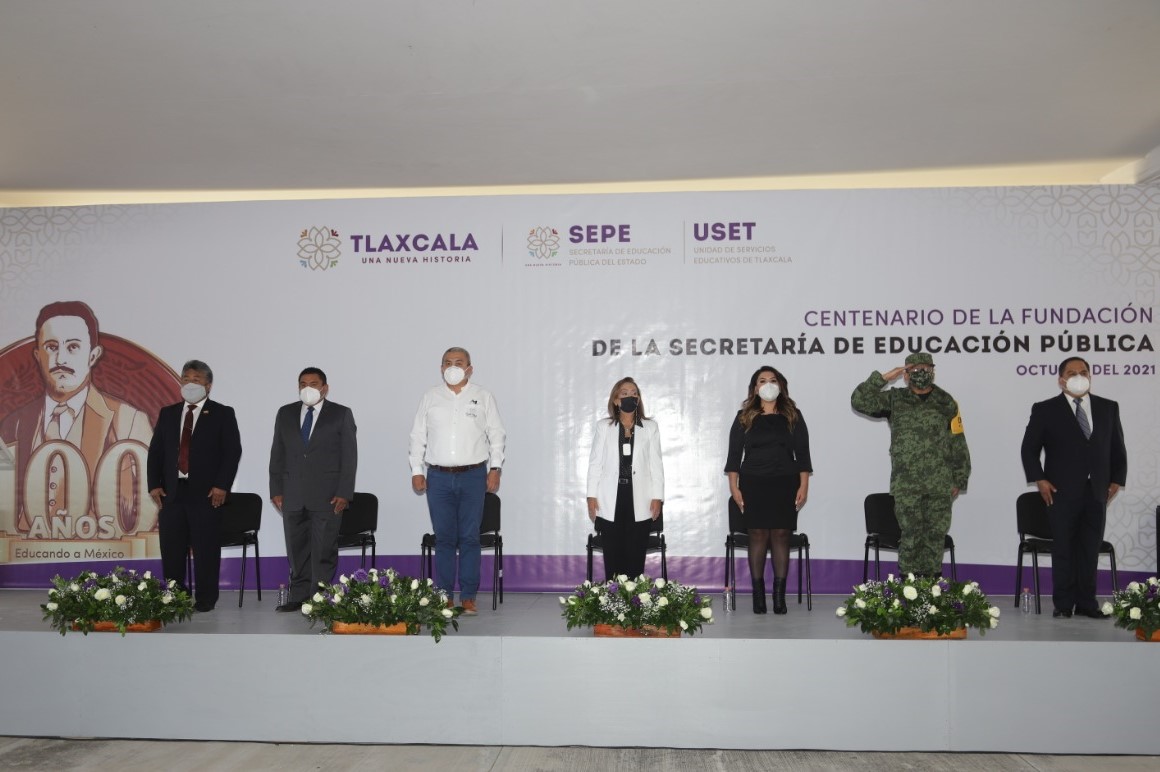 Tlaxcala, Tlax; 6 de octubre de 2021 (Pulso Red) Al encabezar la ceremonia de conmemoración del Centenario de la Fundación de la Secretaría de Educación Pública (SEPE), la gobernadora Lorena Cuéllar Cisneros llamó a la comunidad educativa a construir el Programa Sectorial de Educación que no existe desde hace 25 años, con el fin de mejorar las escuelas y la calidad de enseñanza que se imparte a la niñez tlaxcalteca.