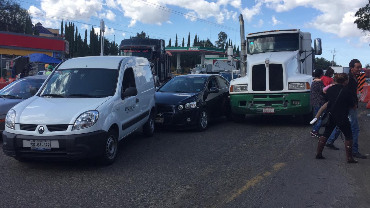 Fue alrededor de las 15:30 horas cuando el operador de la unidad pesada intentó ganar el paso cuando circulaba con dirección a Tlaxcala por lo que impactó en la parte trasera de un vehículo de la marca Chevrolet color negro quien a su vez alcanzó a una camioneta Renault de color blanco.