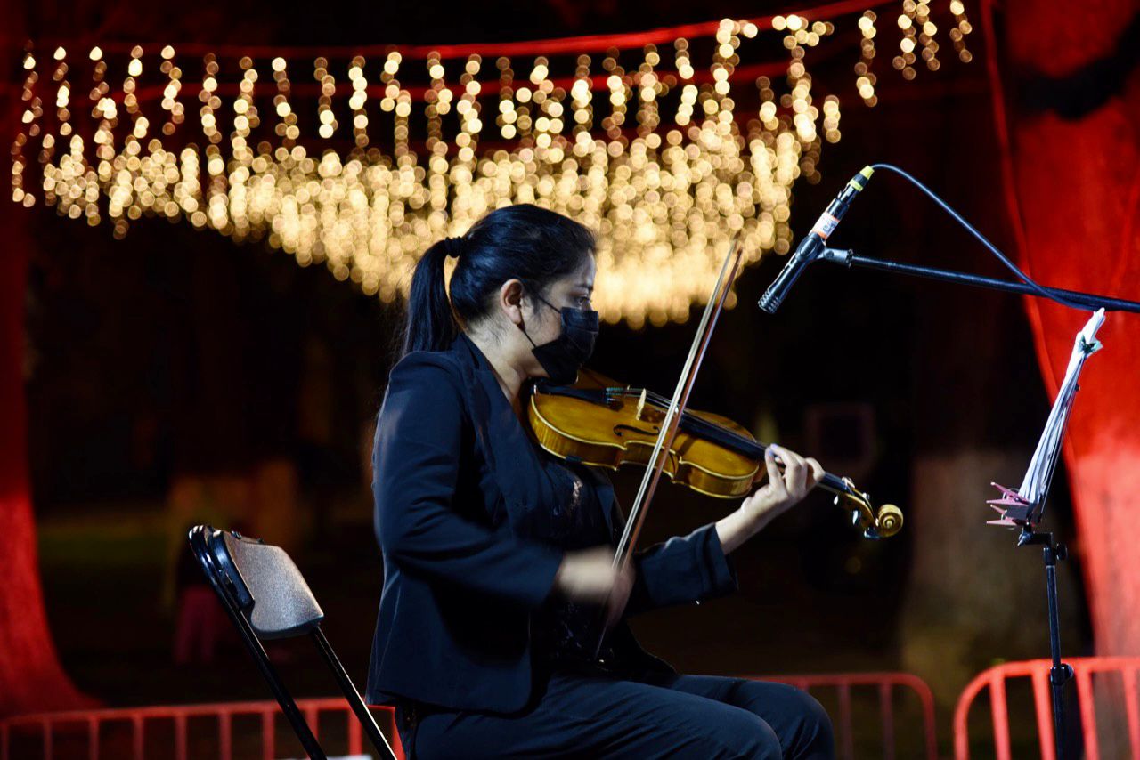 Cantantes de ópera, coro y piano se presentan en un escenario que no puede ser mejor: en la Plaza Xicohténcatl, al pie de la Calzada del Conjunto Conventual Franciscano y Catedralicio de Nuestra Señora de la Asunción.