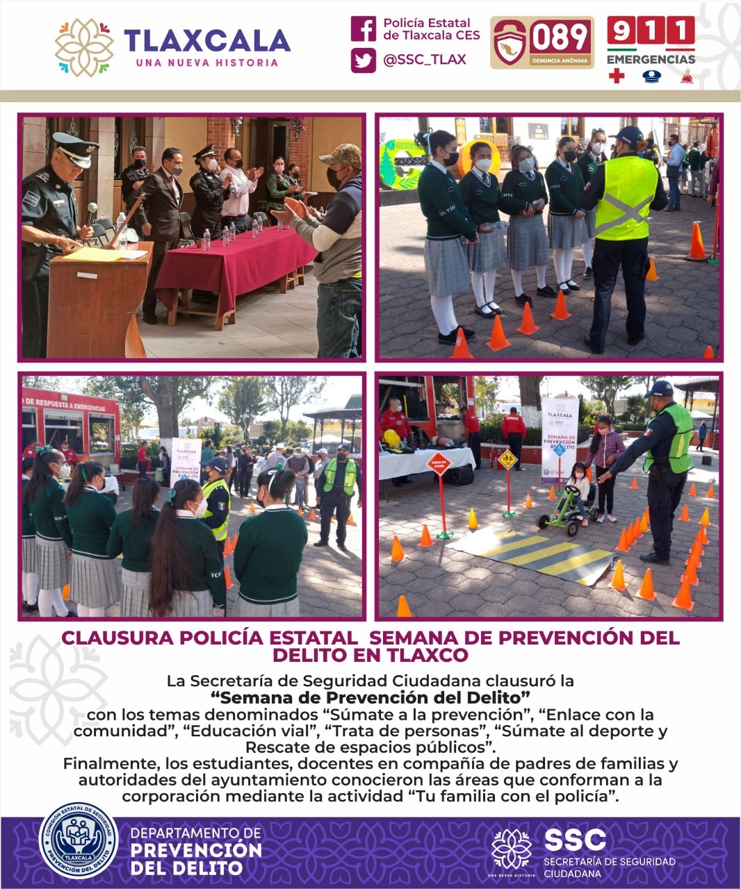 Tlaxcala, Tlax; 10 de diciembre de 2021 (Pulso Red) Con la participación de instituciones educativas, la Secretaría de Seguridad Ciudadana (SSC) clausuró la Semana de Prevención del Delito en el municipio de Tlaxco.