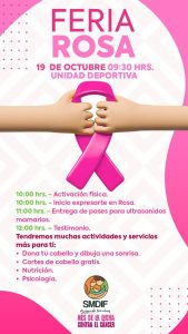 Tlaxcala, Tlax; 19 de octubre de 2022 (PulsoRed) Con el propósito de concientizar a las mujeres sobre la importancia de la detección temprana del cáncer de mama, el Sistema Municipal para el Desarrollo Integral de la Familia (SMDIF) Huamantla, llevará a cabo la Feria Rosa en conmemoración al 19 de octubre.