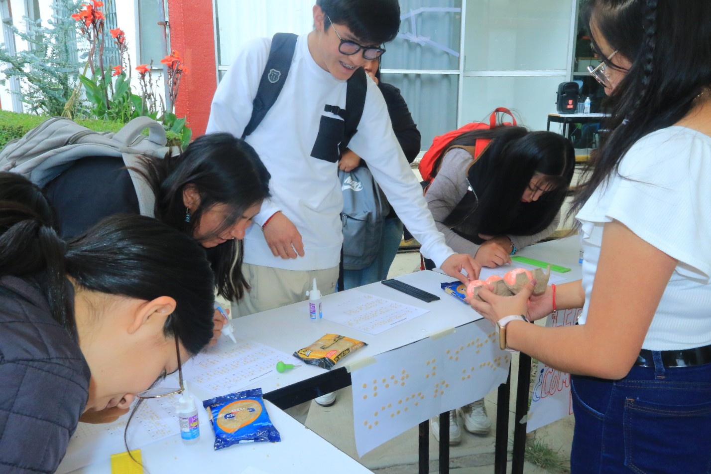 Los asistentes participaron en estaciones interactivas diseñadas y coordinadas por estudiantes de 7º semestre de la Licenciatura en Educación Especial, donde pudieron experimentar el uso del bastón blanco, el sistema Braille, el Ábaco Cranmer o Moraes, la elaboración de materiales táctiles y la orientación en actividades de la vida diaria.