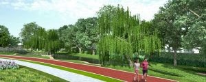 Los acabados contemplan materiales sustentables como ecocreto color gris natural en la plaza cívica y concreto armado en el skatepark, mientras que el pump track combinará asfalto y concreto para mayor durabilidad y dinamismo.