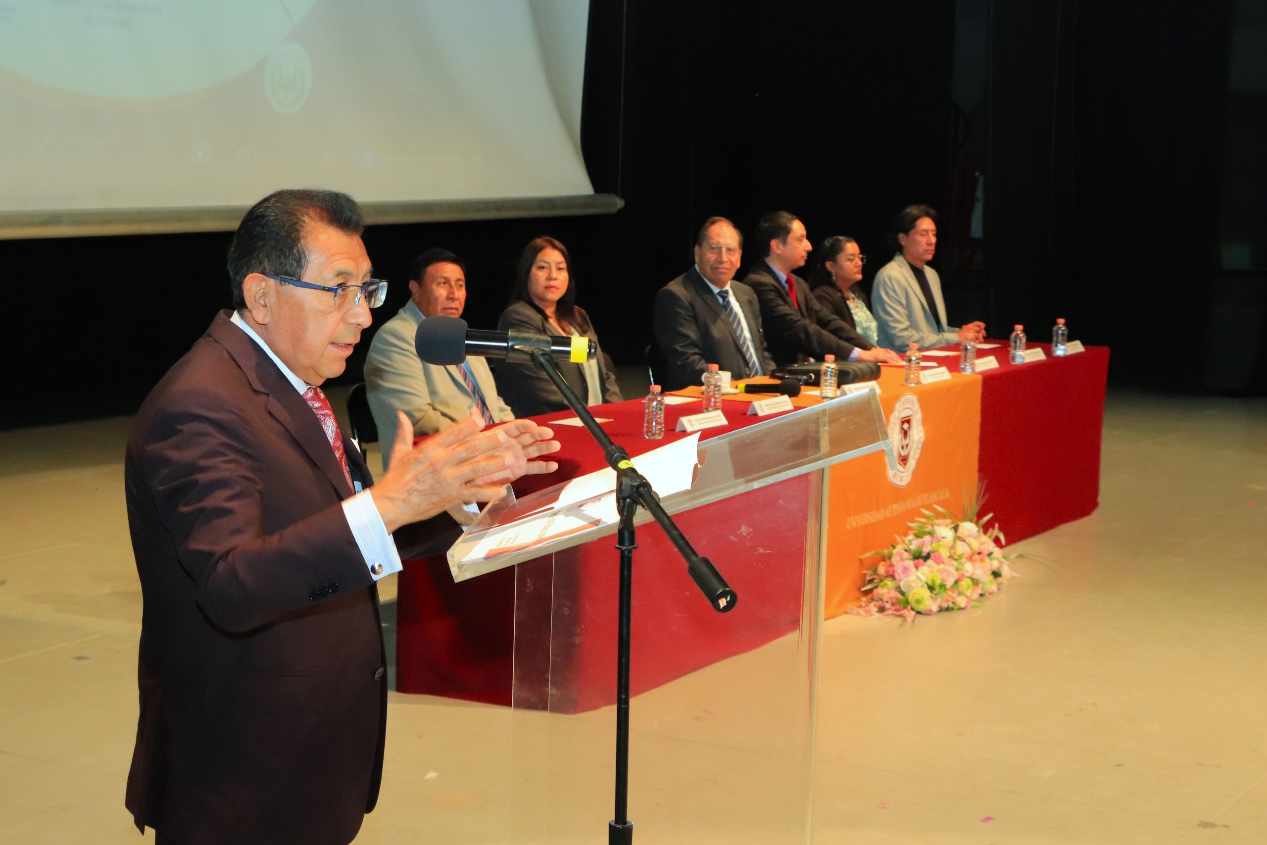 Ante docentes de los 46 programas educativos reunidos en el Centro Cultural Universitario, el Doctor Ortiz reconoció el trabajo que han desplegado la Secretaría Académica, a cargo del Maestro Alejandro Palma Suárez, y la Unidad Institucional de Formación Docente por mantener una actividad constante de actualización del profesorado de esta máxima Casa de Estudios.