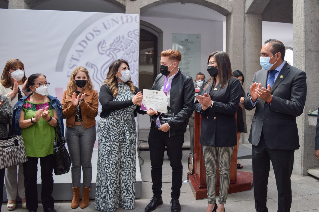 En el Pleno del Poder Legislativo, el artista Jesús Rojas Cuahutle recibió la presea al arte “Maestro Desiderio Hernández Xochitiotzin”, de manos del diputado Rubén Terán Águila, quien presentó la iniciativa, acompañado por las legisladoras Gabriela Esperanza Brito Jiménez y Laura Alejandra Ramírez.