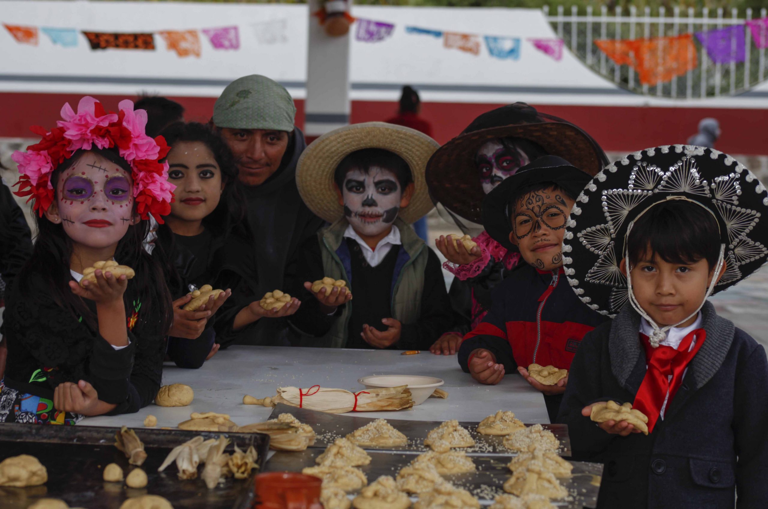 Esta tradición ancestral contó con la elaboración de pan de muertos, presentación de calaveras en náhuatl, desfile y una comida con alimentos tradicionales de la región.