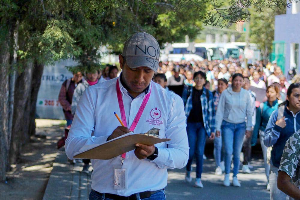 Tlaxcala, Tlax; 12 de septiembre de 2023 (PulsoRed) Por segundo día consecutivo, la Comisión Estatal de Derechos Humanos de Tlaxcala (CEDHT) brindó acompañamiento con observadoras y observadores a las estudiantes de la escuela normal rural “Benito Juárez” del municipio de Panotla y de otras instituciones del país, durante la marcha efectuada este martes y que comenzó en las instalaciones de la institución educativa, durante su trayecto hasta la capital del Estado y su arribo a las instalaciones de la Secretaría de Educación Pública en el Estado y Unidad de Servicios Educativos de Tlaxcala (Sepe-Uset).