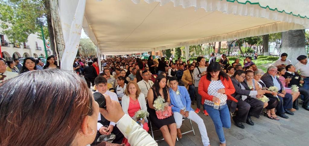 Tlaxcala, Tlax. 28 de septiembre de 2019 (Rommel Pichardo) Con la presencia del Oficial Mayor de Gobierno, Luis Miguel Álvarez Landa y la presidenta municipal de Tlaxcala, Anabell Ávalos Zempoalteca, se efectuó este sábado la ceremonia de matrimonios de la campaña «Para Tu Bien… Y de tu Familia», donde 210 parejas regularizaron su estado civil.