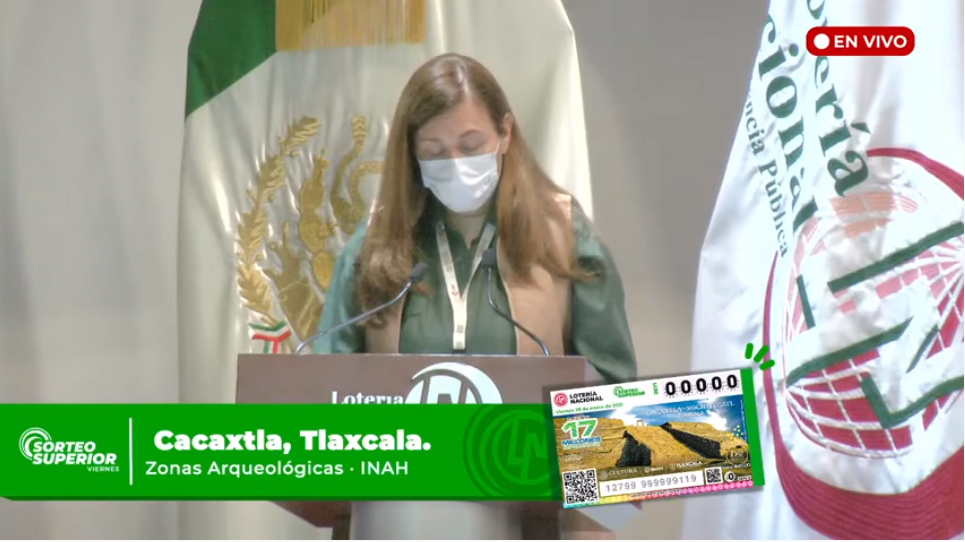 En su oportunidad, Yuriria Estela Robles Aguayo, Subgerente de Relaciones Públicas, destacó que en coordinación con el Instituto Nacional de Antropología e Historia (INAH), a través del sorteo se recuerda a Cacaxtla-Xochitécatl, que se encuentra ubicado al sur de Tlaxcala, y detalló que la palabra “Xochitécatl” significa el habitante o el nativo de Xochitlán, mientras que otra traducción podría ser “Lugar del Linaje de las Flores”.