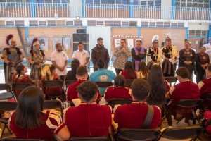 La presidenta Angulo acudió como invitada a la ceremonia en la que bendijeron las coronas de espinas con las que los grupos culturales harán la representación de la Pasión de Cristo, y ante esa comunidad pidió mantenerse unidos y que el mensaje de paz se transmita en buenas acciones y respeto a las personas y a la naturaleza.