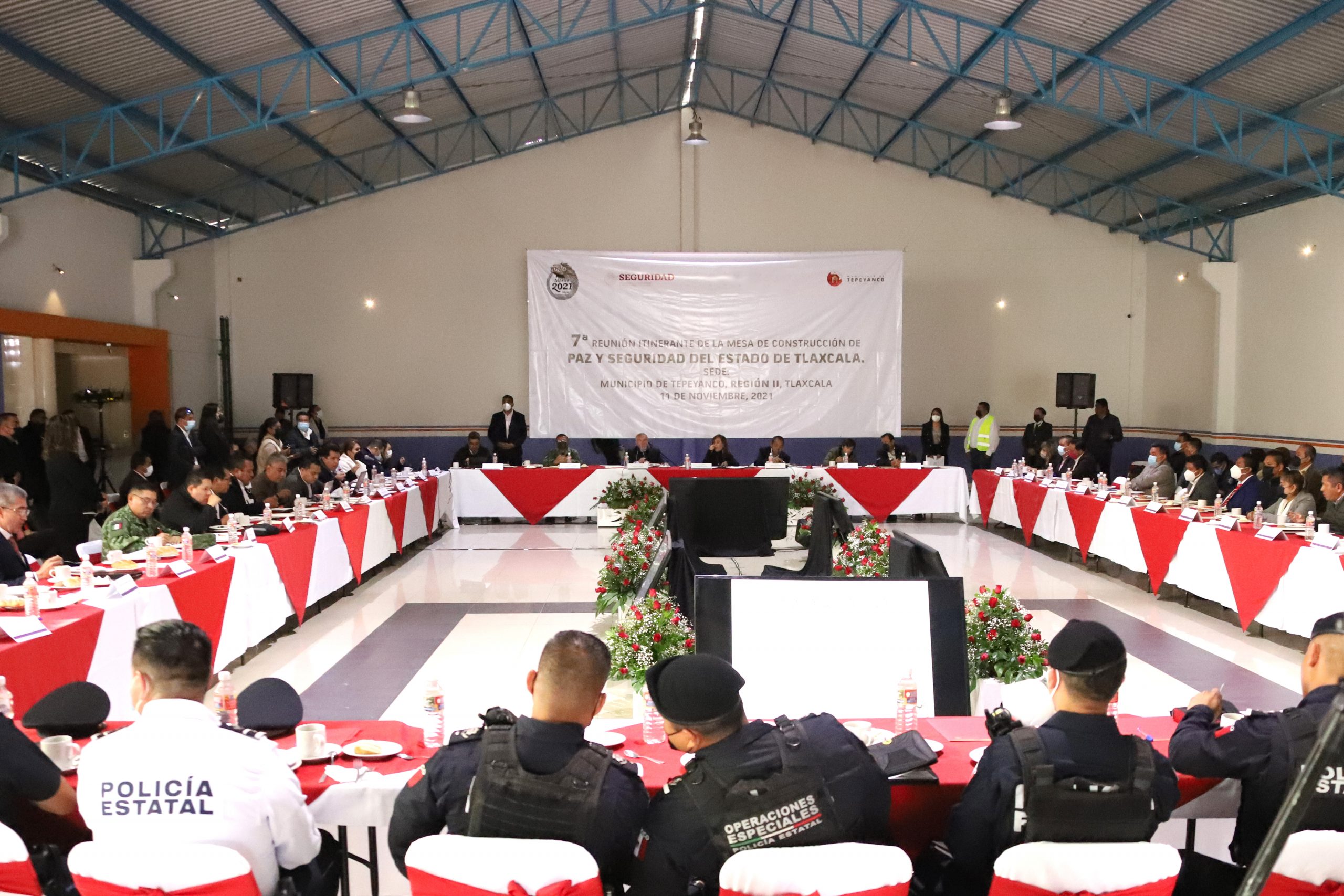 Tlaxcala, Tlax; 11 de noviembre de 2021 (Pulso Red) Autoridades federales, estatales y municipales sostuvieron la séptima reunión itinerante de la Mesa de Construcción de Paz y Seguridad Región II Tlaxcala, efectuada en San Pedro Xalcaltzinco, municipio de Tepeyanco.