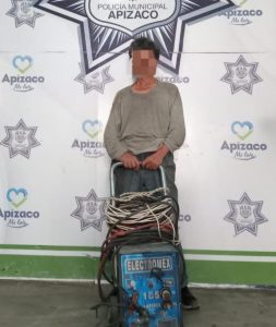 Apizaco, Tlax; 3 de mayo de 2023 (PulsoRed) Oficiales del Grupo Especial de Operaciones (GEO) de la Dirección de Seguridad Pública Municipal, Vialidad y Transporte de Apizaco, detuvieron a un hombre de 59 años de edad luego de ser señalado de cometer el robo de una soldadora, en la Colonia «La Soledad».