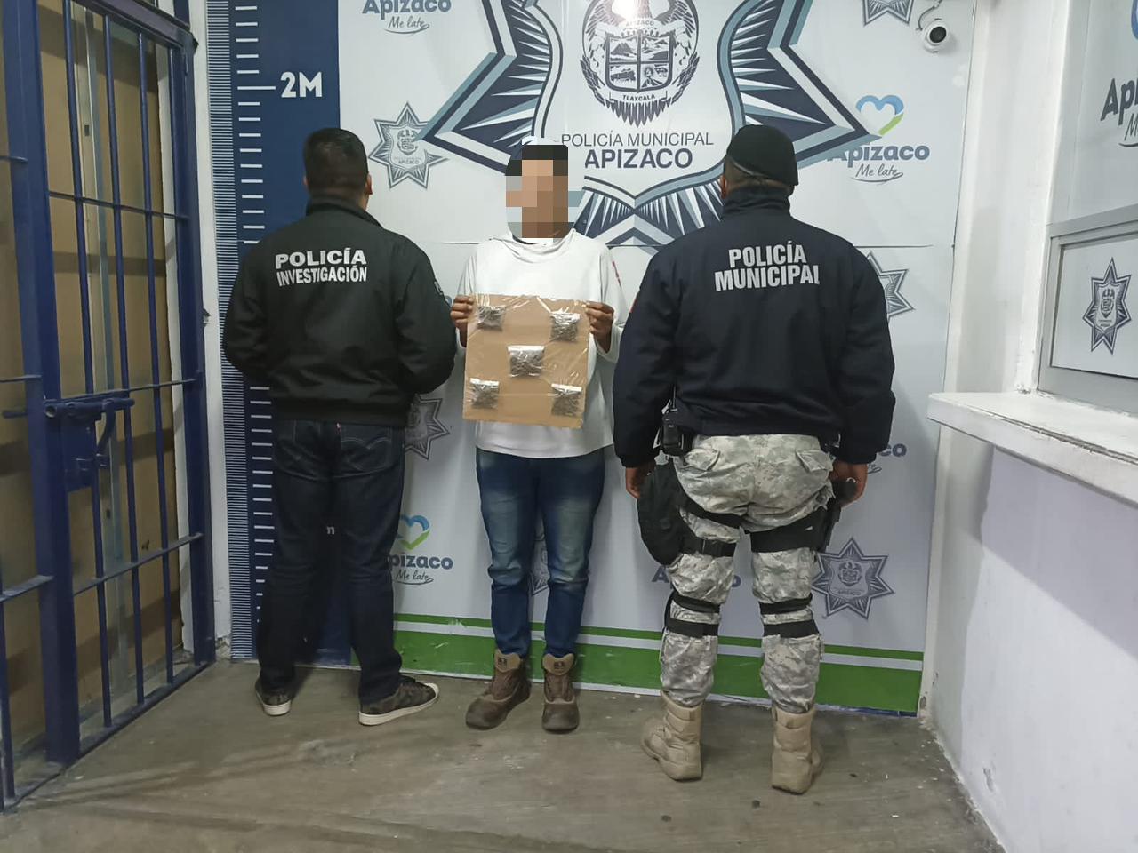 Apizaco, Tlax; 30 de agosto de 2023 (PulsoRed) Los trabajos de investigación y patrullajes del Grupo Especial de Operaciones de la Dirección de Seguridad Pública Municipal, Vialidad y Transporte de Apizaco, permitió a elementos de la corporación concretar la detención de dos sujetos por su probable participación en delitos contra la salud y faltas administrativas.